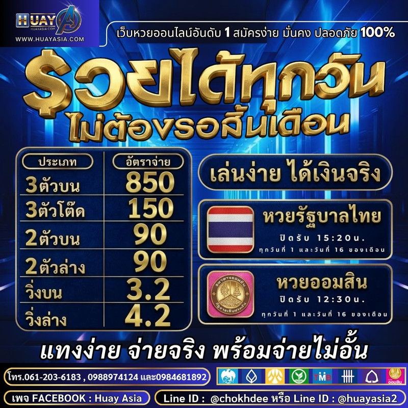ทางเลือกใหม่ของคนรักการเสี่ยงโชค HUAYASIA บริการครบวงจร ระบบออโต้ ใช้ง่าย ปลอดภัย